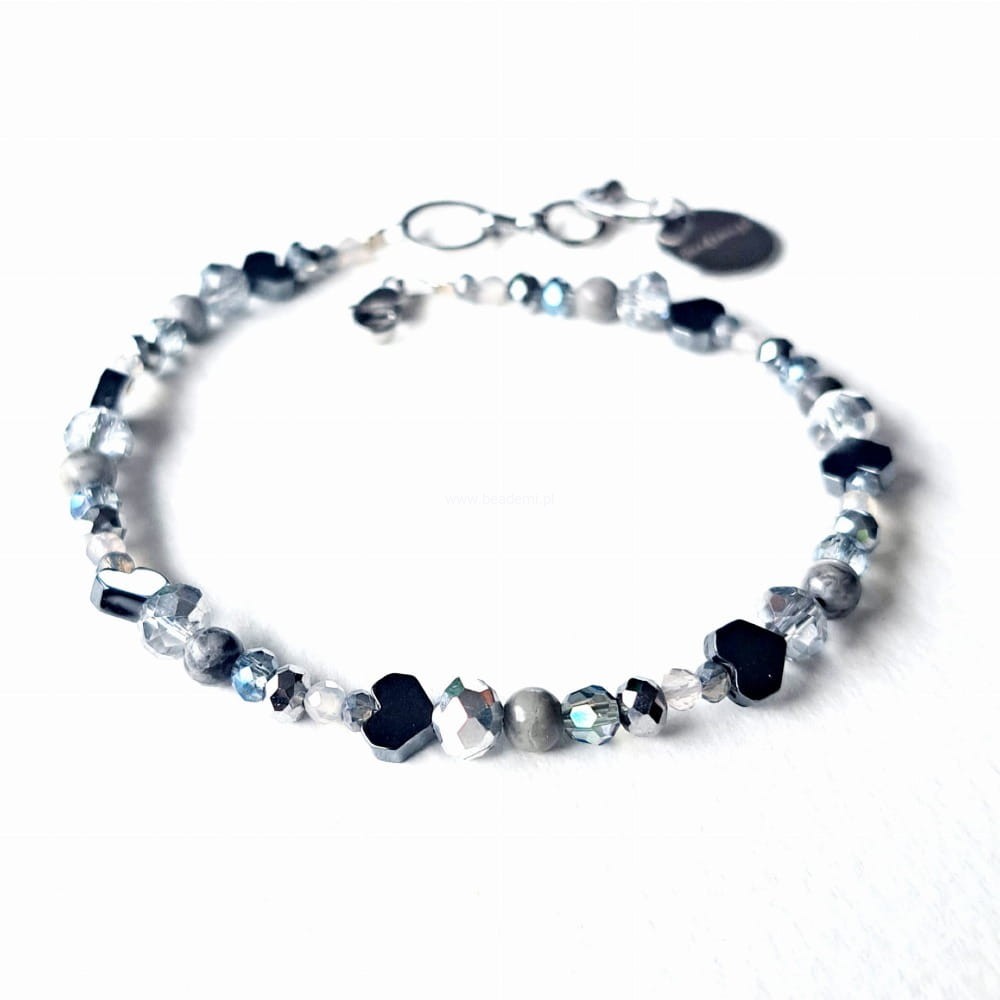 Całości dopełniają i kolorytu dodają szklane kryształki. Bransoletka ma również znaczek Beademi.pl wykonany ze stali.