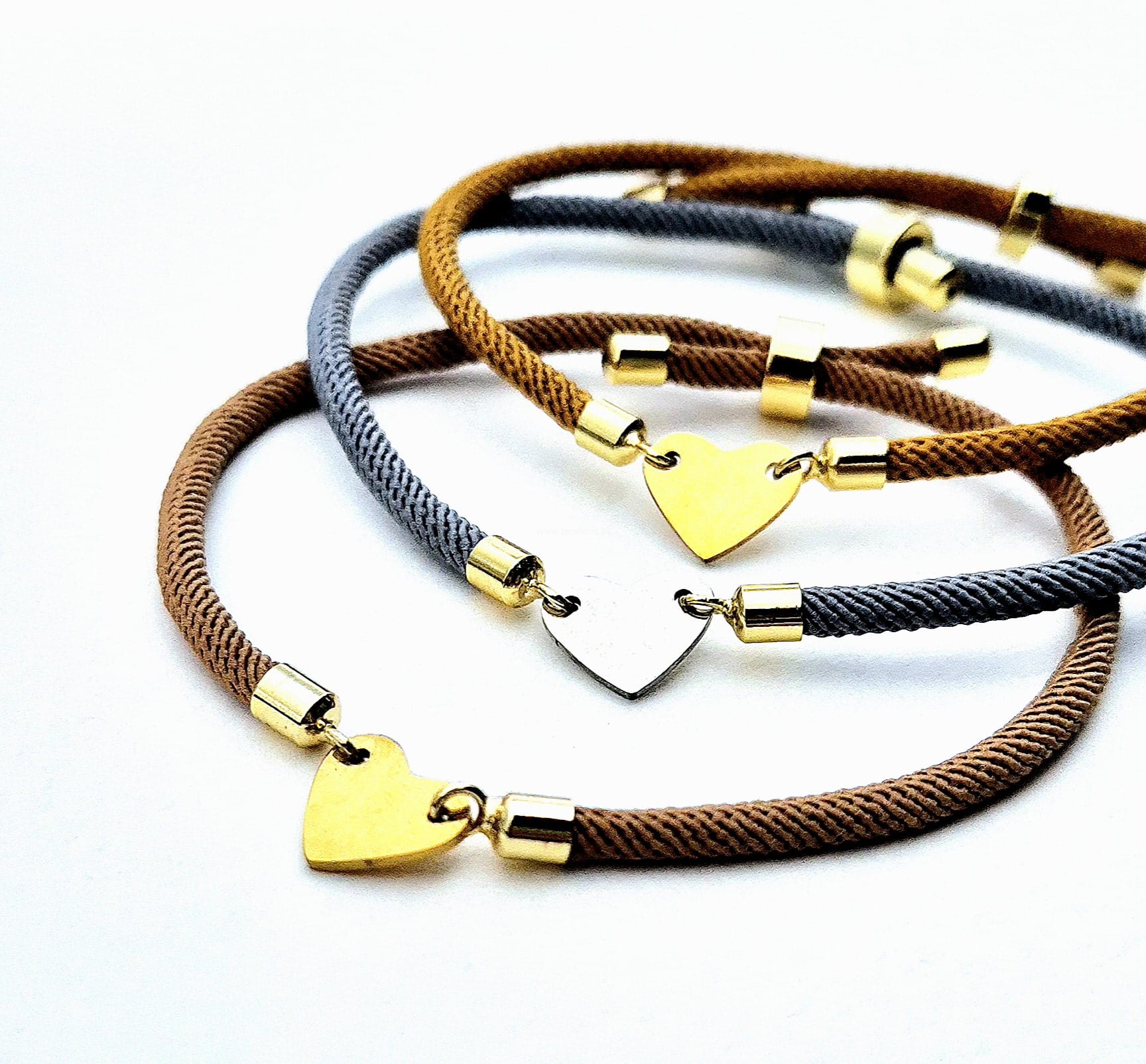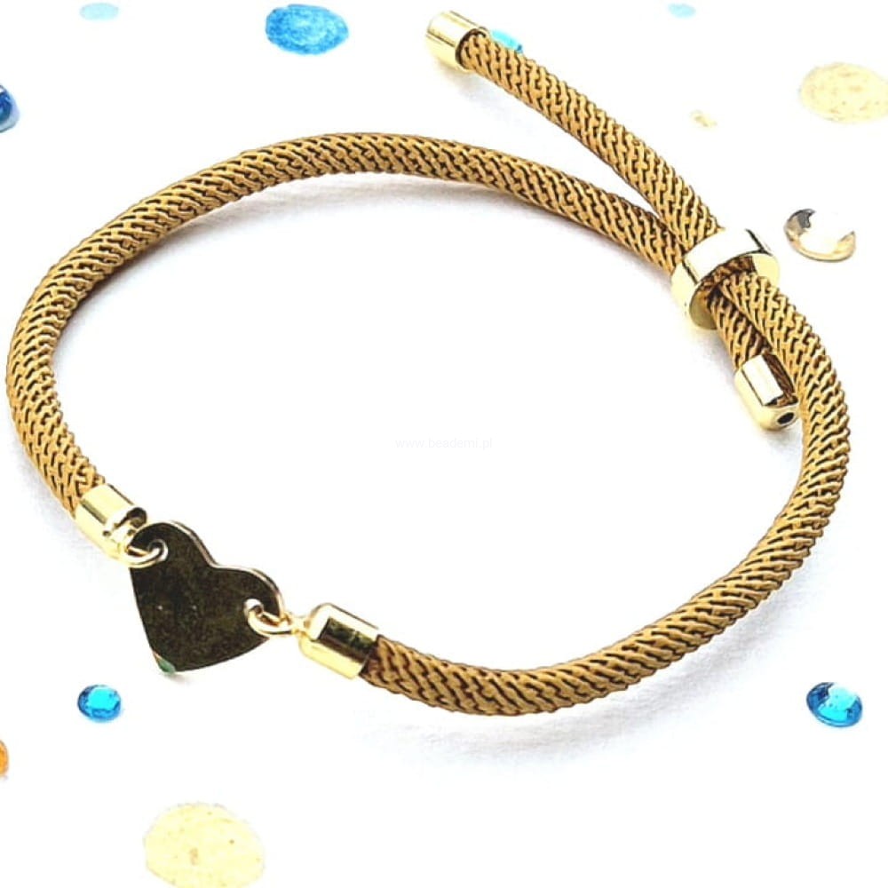 Sznurek jest tutaj koloru ciepłego brązu, a główną jej ozdobą jest serce ze stali .