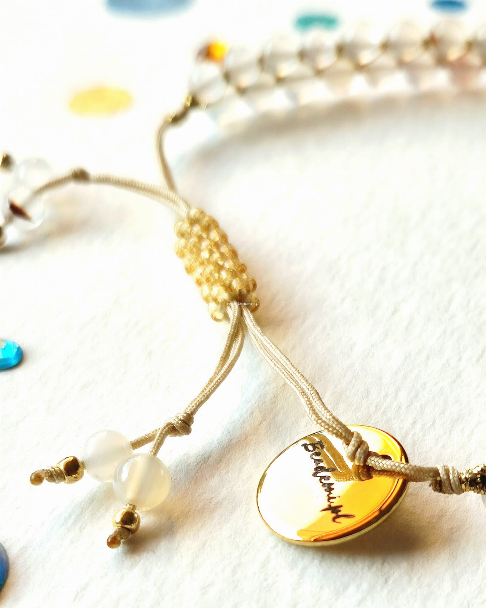 Bransoletka ma również znaczek Beademi.pl wykonany ze stali.