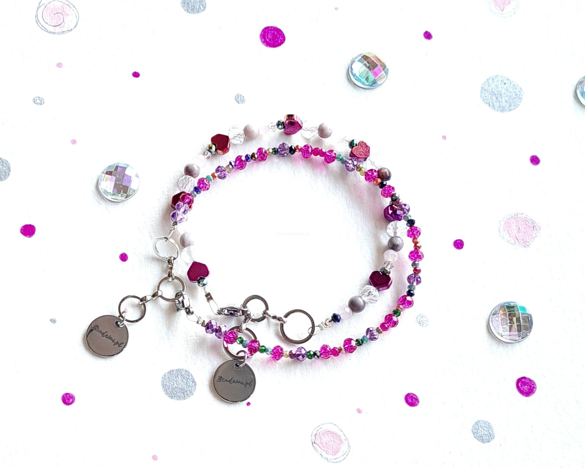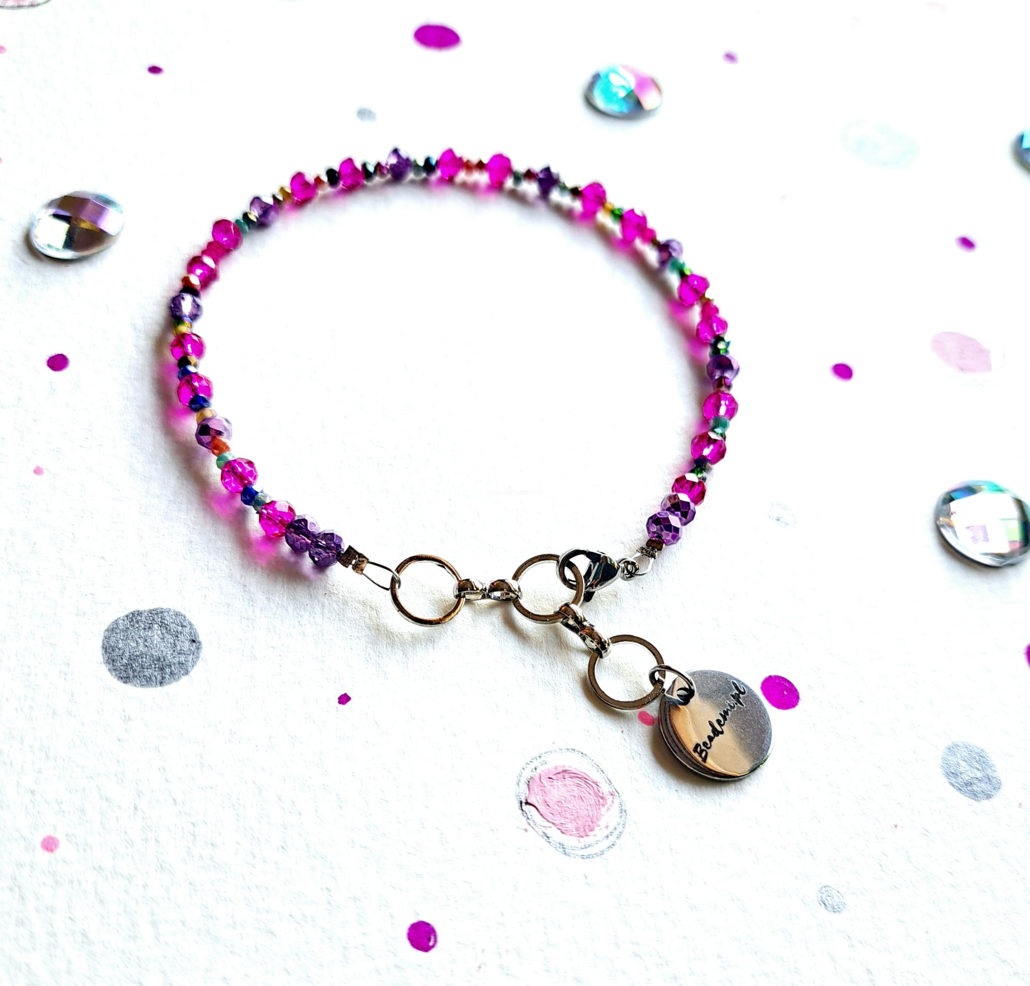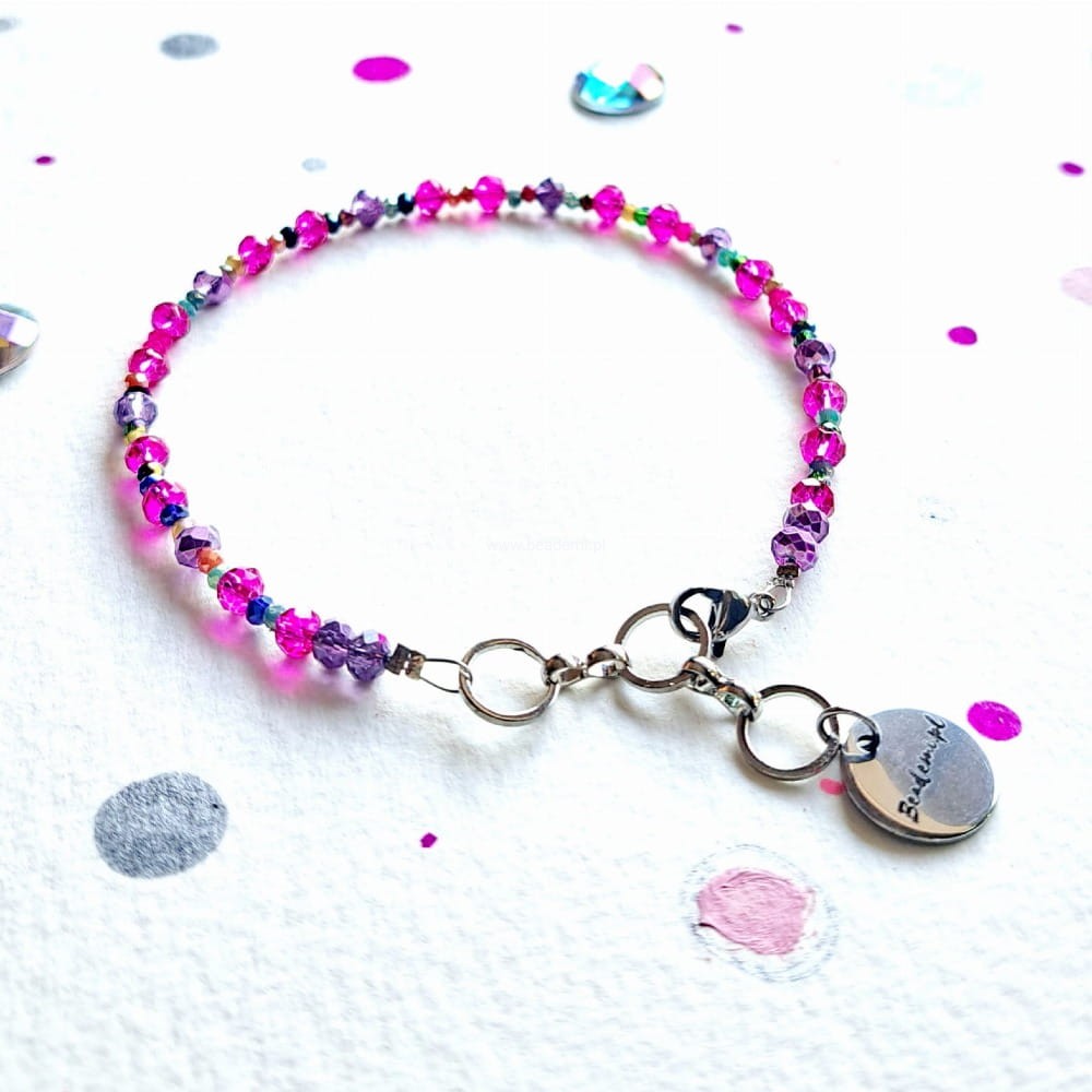 Całości dopełniają i kolorytu dodają szklane kryształki. Bransoletka ma również znaczek Beademi.pl wykonany ze stali.