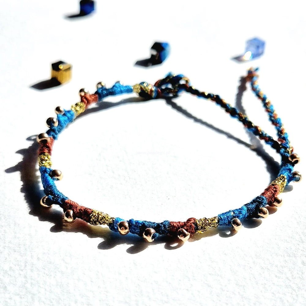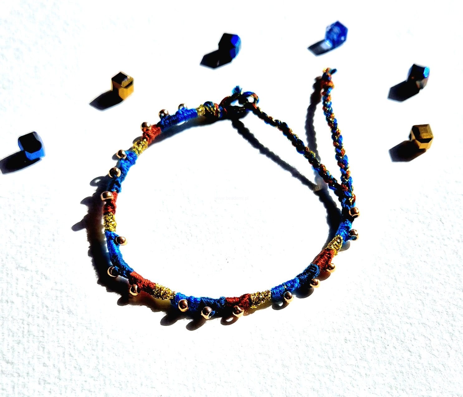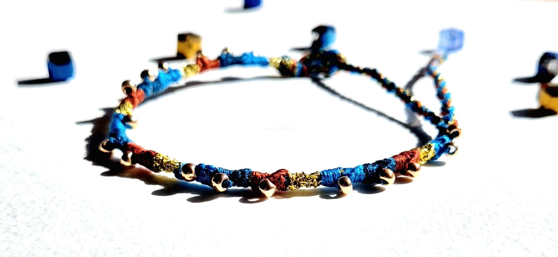 Bransoletka z muliny z koralikami to bransoletka wiązana na sznureczki. Pasuje na rękę o grubości w nadgarstku 16-17 cm .