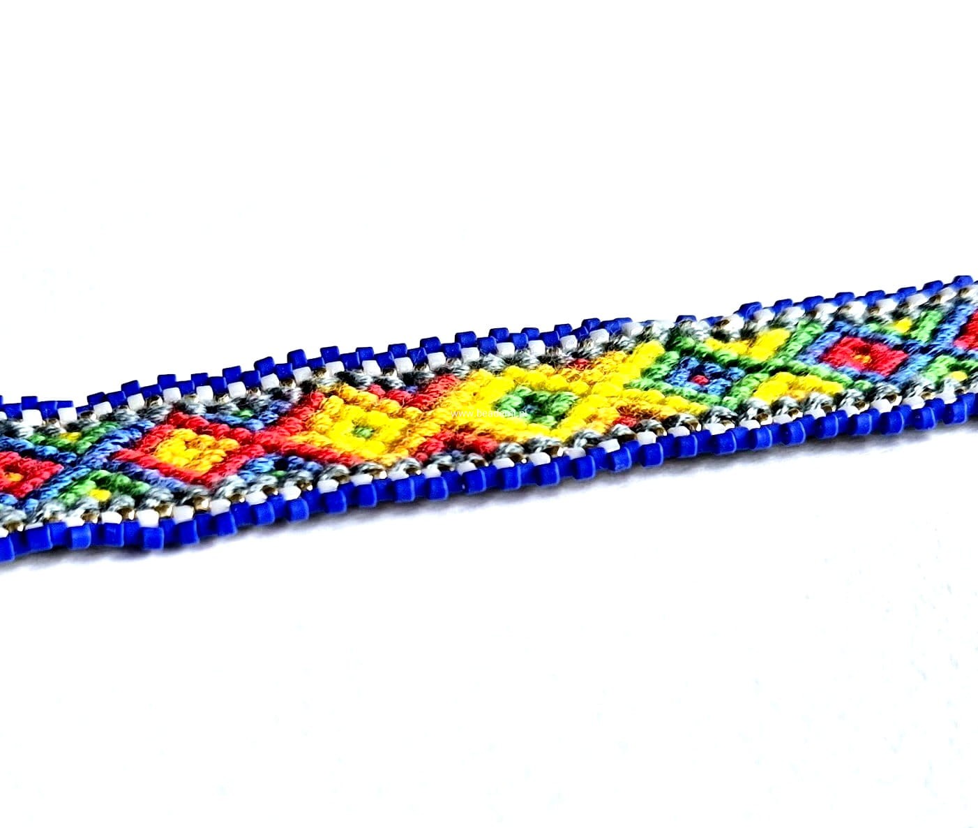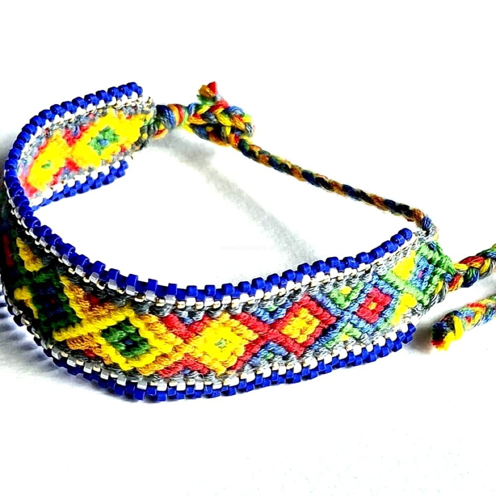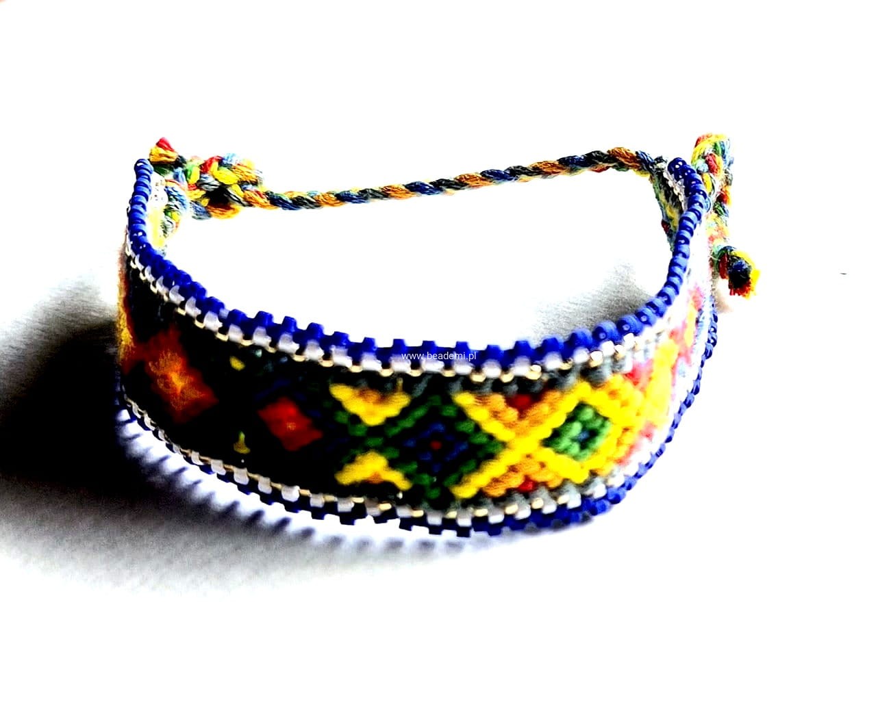 Bransoletka z muliny z koralikami to bransoletka wiązana na sznureczki. Pasuje na rękę o grubości w nadgarstku 16-17 cm .