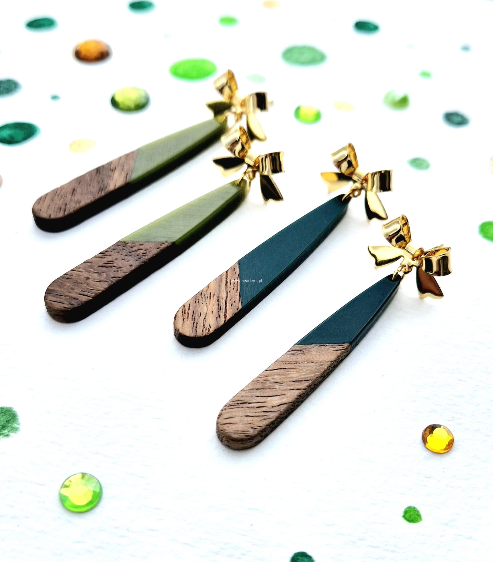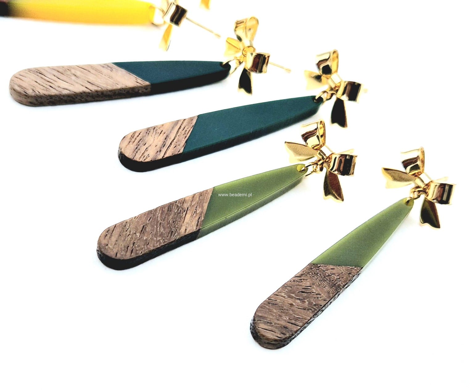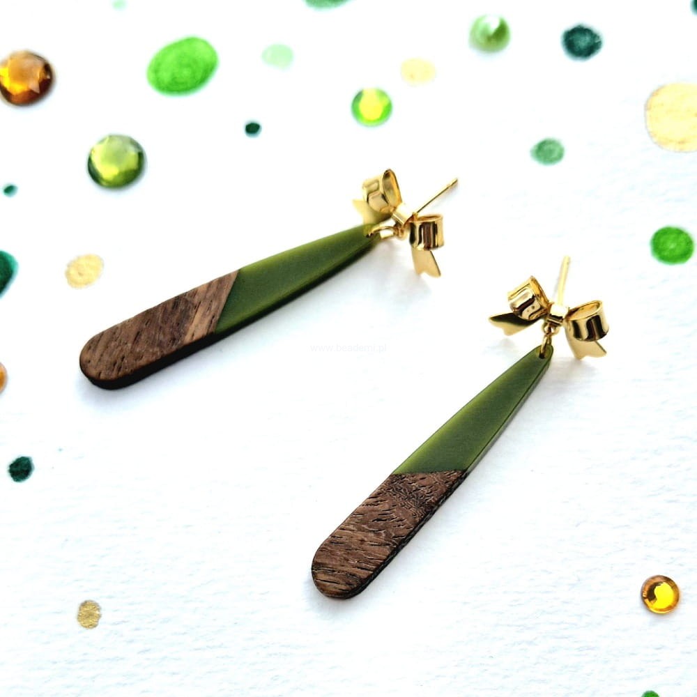 Kolczyki kokardki drewno i żywica