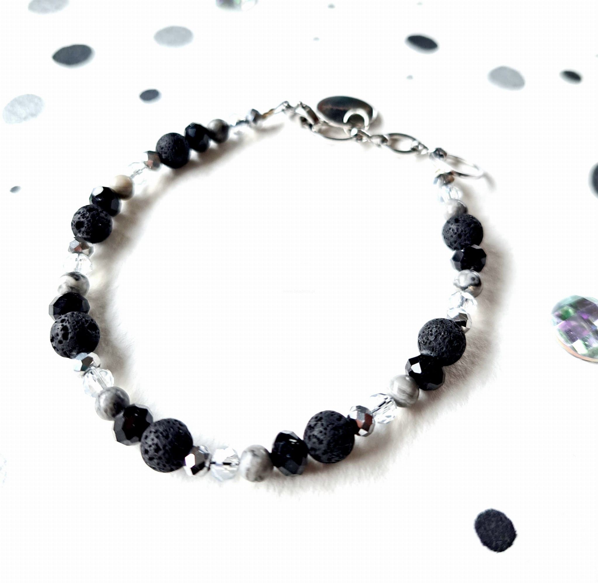 Całości dopełniają i kolorytu dodają szklane kryształki. Bransoletka ma również znaczek Beademi.pl wykonany ze stali.